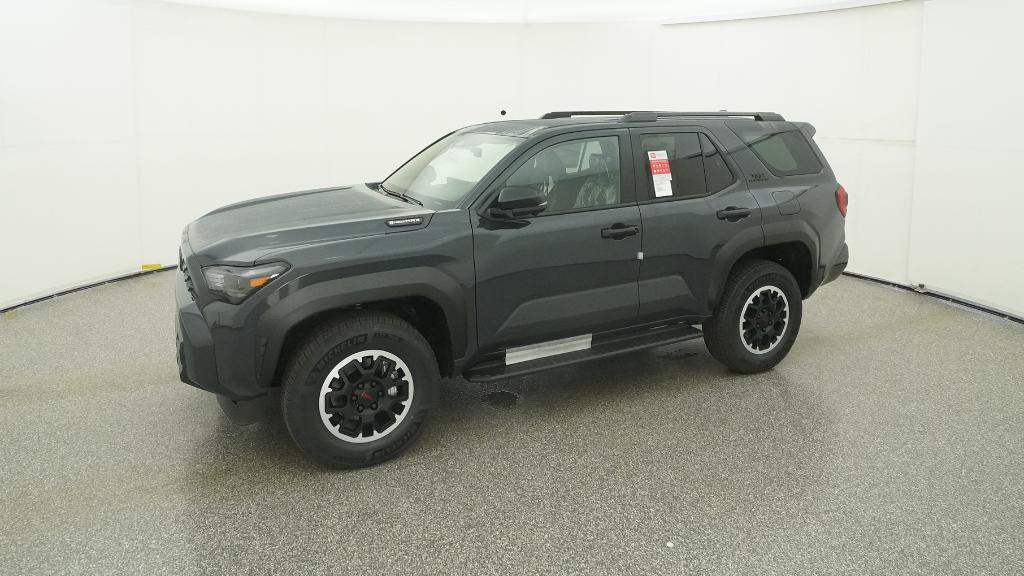 - Black honeycomb-style grille, mirror caps, door handles and overfenders color-keyed rear spoiler black 'TRD OFF ROAD' and '4RUNNER' badges