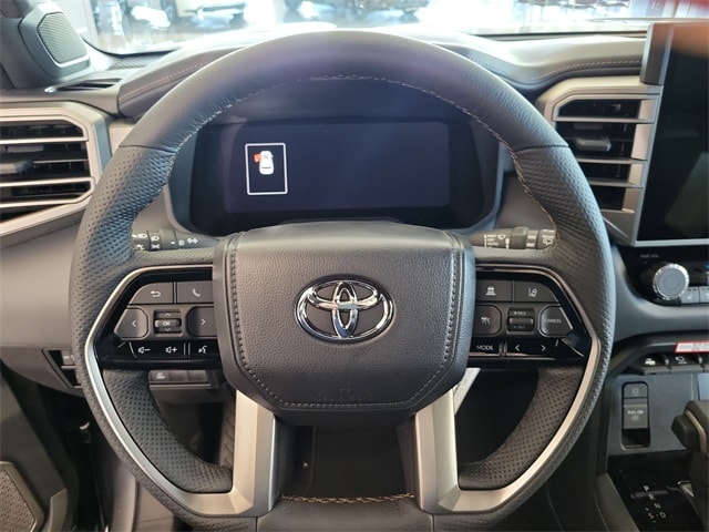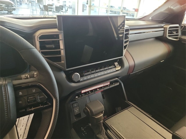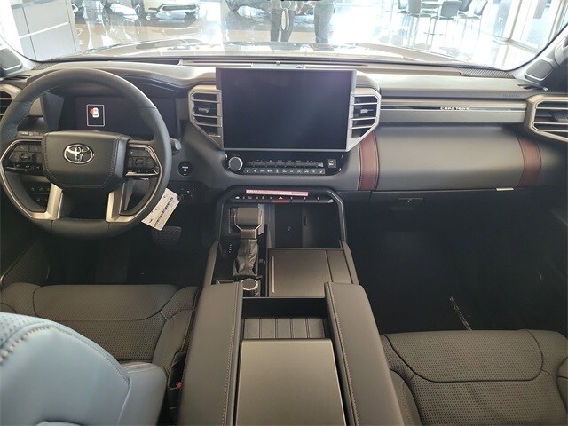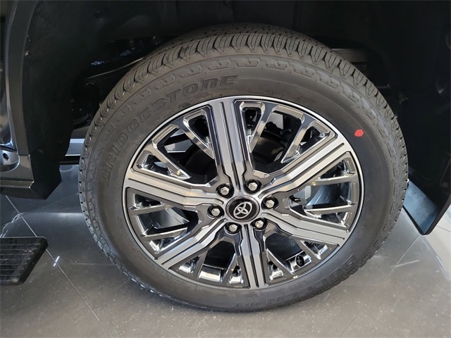 V6 Hybrid, 10-Speed Automatic, 4WD, 14 Speakers, 3rd row seats: split-bench, 4-Wheel Disc Brakes, ABS brakes, Air Conditioning, Alloy wheels, AM/FM radio: SiriusXM, Anti-whiplash front head restraints, Apple CarPlay/Android Auto, Auto High-beam Headlights, Auto tilt-away steering wheel, Auto-dimming door mirrors, Auto-dimming Rear-View mirror, Automatic temperature control, Brake assist, Bumpers: body-color, Compass, Delay-off headlights, Driver door bin, Driver vanity mirror, Dual front impact airbags, Dual front side impact airbags, Electronic Stability Control, Emergency communication system: Safety Connect (10-year trial), Exterior Parking Camera Rear, Front anti-roll bar, Front Bucket Seats, Front Center Armrest w/Storage, Front dual zone A/C, Front fog lights, Front reading lights, Front wheel independent suspension, Fully automatic headlights, Garage door transmitter: HomeLink, Genuine wood door panel insert, Headlight cleaning, Heads-Up Display, Heated and Ventilated Front Seats, Heated door mirrors, Heated front seats, Heated rear seats, Heated steering wheel, Illuminated entry, Knee airbag, Leather Seat Trim, Leather Shift Knob, Leather steering wheel, Low tire pressure warning, Memory seat, Navigation system: Drive Connect (1 year trial) includes Cloud Navigation with real time traffic and Google POI, Occupant sensing airbag, Outside temperature display, Overhead airbag, Overhead console, Panic alarm, Passenger door bin, Passenger vanity mirror, Power door mirrors, Power driver seat, Power Liftgate, Power moonroof, Power passenger seat, Power steering, Power windows, Premium audio system: JBL, Radio: 14" Toyota Audio Multimedia with JBL Premium Audio, Rain sensing wipers, Rear air conditioning, Rear reading lights, Rear seat center armrest, Rear window defroster, Rear window wiper, Reclining 3rd row seat, Remote keyless entry, Security system, Speed control, Speed-sensing steering, Split folding rear seat, Spoiler, Sport steering wheel, Steering wheel mounted audio controls, Tachometer, Telescoping steering wheel, Tilt steering wheel, Traction control, Trip computer, Turn signal indicator mirrors, Variably intermittent wipers, Ventilated front seats, Ventilated rear seats, Voltmeter, and Wheels: 22" Dark Chrome Machined-Finish Alloy.