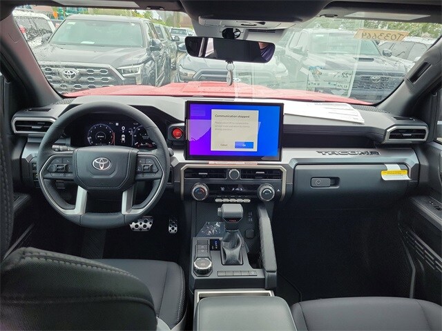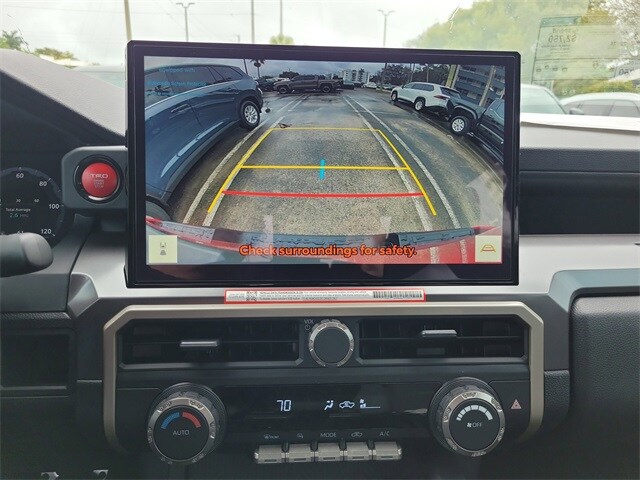3.583 Axle Ratio, 4-Wheel Disc Brakes, 6 Speakers, ABS brakes, Air Conditioning, Alloy wheels, AM/FM radio: SiriusXM, Anti-whiplash front head restraints, Apple CarPlay/Android Auto, Auto High-beam Headlights, Auto-dimming Rear-View mirror, Automatic temperature control, Brake assist, Bumpers: body-color, Driver door bin, Driver vanity mirror, Dual front impact airbags, Dual front side impact airbags, Electronic Stability Control, Emergency communication system: Safety Connect (up to 10-year trial subscription), Exterior Parking Camera Rear, Fabric Seat Trim, Four wheel independent suspension, Front anti-roll bar, Front Bucket Seats, Front Center Armrest, Front fog lights, Front reading lights, Fully automatic headlights, Heated door mirrors, Illuminated entry, Knee airbag, Leather Shift Knob, Leather steering wheel, Low tire pressure warning, Occupant sensing airbag, Outside temperature display, Overhead airbag, Overhead console, Panic alarm, Passenger door bin, Passenger vanity mirror, Power door mirrors, Power steering, Power windows, Radio: 8" Toyota Audio Multimedia, Rear step bumper, Rear window defroster, Remote keyless entry, Security system, Speed control, Speed-sensing steering, Split folding rear seat, Steering wheel mounted audio controls, Tachometer, Telescoping steering wheel, Tilt steering wheel, Traction control, Trip computer, Turn signal indicator mirrors, Variably intermittent wipers, and Wheels: 18" TRD Sport Alloy.