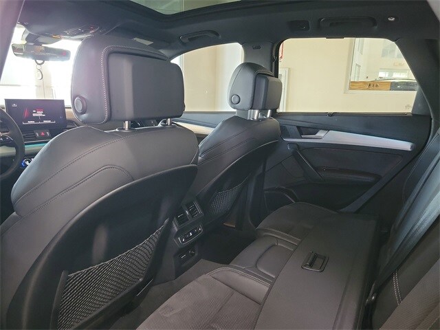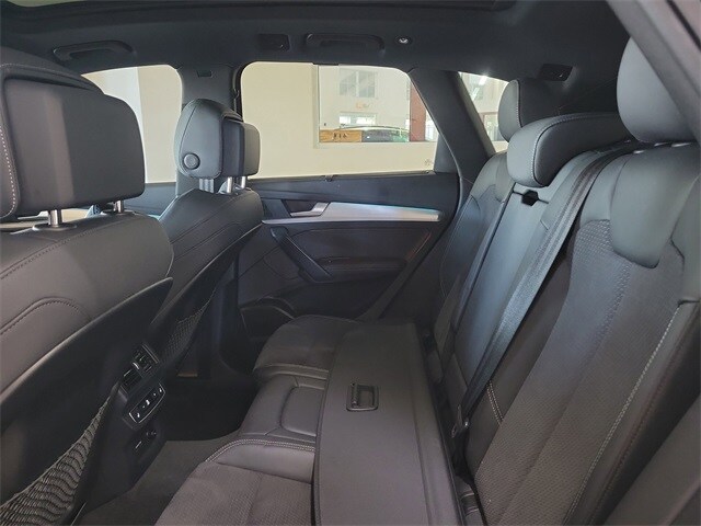 2.0L Turbocharged, 10 Speakers, 4-Wheel Disc Brakes, ABS brakes, Air Conditioning, Alloy wheels, AM/FM radio, Auto High-beam Headlights, Auto-dimming Rear-View mirror, Automatic temperature control, Axle Ratio: 5.30, Brake assist, Bumpers: body-color, Compass, Delay-off headlights, Driver door bin, Driver vanity mirror, Dual front impact airbags, Dual front side impact airbags, Electronic Stability Control, Emergency communication system: Audi connect CARE, Exterior Parking Camera Rear, Four wheel independent suspension, Front anti-roll bar, Front Bucket Seats, Front Center Armrest, Front dual zone A/C, Front fog lights, Front reading lights, Garage door transmitter: HomeLink, Genuine wood console insert, Genuine wood dashboard insert, Genuine wood door panel insert, Heated 8-Way Power Front Seats, Heated door mirrors, Heated front seats, Heated steering wheel, Illuminated entry, Leather Seating Surfaces, Leather Shift Knob, Leather steering wheel, Low tire pressure warning, Occupant sensing airbag, Outside temperature display, Overhead airbag, Overhead console, Panic alarm, Passenger door bin, Passenger vanity mirror, Power door mirrors, Power driver seat, Power Liftgate, Power passenger seat, Power steering, Power windows, Radio data system, Radio: Audi Sound System, Rain sensing wipers, Rear air conditioning, Rear anti-roll bar, Rear fog lights, Rear reading lights, Rear seat center armrest, Rear window defroster, Rear window wiper, Remote keyless entry, Roof rack, Security system, Speed control, Speed-sensing steering, Speed-Sensitive Wipers, Split folding rear seat, Spoiler, Steering wheel mounted audio controls, Tachometer, Telescoping steering wheel, Tilt steering wheel, Traction control, Trip computer, Turn signal indicator mirrors, Variably intermittent wipers, and Wheels: 19" 5-Double-Spoke-Star Design.