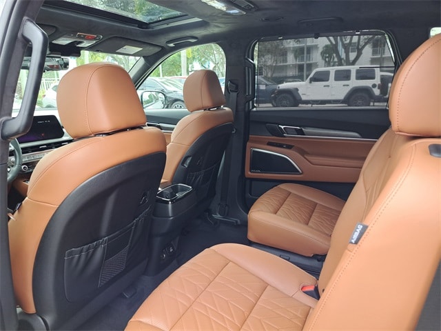 Terracotta Interior Color Package, 10 Speakers, 3rd row seats: split-bench, 4-Wheel Disc Brakes, ABS brakes, Air Conditioning, Alloy wheels, AM/FM radio: SiriusXM, Apple CarPlay & Android Auto, Auto High-beam Headlights, Auto-dimming Rear-View mirror, Auto-leveling suspension, Automatic temperature control, Brake assist, Bumpers: body-color, Carpeted Floor Mats, Compass, Delay-off headlights, Driver door bin, Driver vanity mirror, Dual front impact airbags, Dual front side impact airbags, Electronic Stability Control, Emergency communication system: 911 Connect, Exterior Parking Camera Rear, Four wheel independent suspension, Front anti-roll bar, Front Bucket Seats, Front Center Armrest, Front dual zone A/C, Front fog lights, Front reading lights, Fully automatic headlights, Garage door transmitter: HomeLink, harman/kardon® Speakers, Heads-Up Display, Heated & Ventilated Front Bucket Seats, Heated door mirrors, Heated front seats, Heated rear seats, Heated steering wheel, Illuminated entry, Knee airbag, Leather Shift Knob, Leather steering wheel, Low tire pressure warning, Memory seat, Nappa Leather Seat Trim, Navigation System, Occupant sensing airbag, Outside temperature display, Overhead airbag, Overhead console, Panic alarm, Passenger door bin, Passenger vanity mirror, Power door mirrors, Power driver seat, Power Liftgate, Power moonroof, Power passenger seat, Power steering, Power windows, Radio data system, Radio: AM/FM Harman Kardon Audio System, Rain sensing wipers, Rear air conditioning, Rear anti-roll bar, Rear audio controls, Rear reading lights, Rear side impact airbag, Rear window defroster, Rear window wiper, Reclining 3rd row seat, Remote keyless entry, Security system, Speed control, Speed-sensing steering, Split folding rear seat, Spoiler, Steering wheel mounted audio controls, Tachometer, Telescoping steering wheel, Tilt steering wheel, Traction control, Trip computer, Turn signal indicator mirrors, Variably intermittent wipers, Ventilated front seats, Ventilated rear seats, and Wheels: 20" x 7.5" Black Finish X-LINE Exclusive.