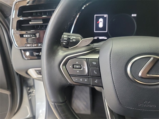 Black w/Black Open Pore w/Leather Seat Trim, ABS brakes, Active Cruise Control, Alloy wheels, Compass, Electronic Stability Control, Front dual zone A/C, Heated & Ventilated Front Bucket Seats, Heated door mirrors, Heated front seats, Illuminated entry, Low tire pressure warning, Power Liftgate, Power moonroof, Remote keyless entry, Traction control, 12 Speakers, 19" Wheels, 3.33 Axle Ratio, 4-Wheel Disc Brakes, 8-Way Power Driver & Front Passenger Seat Adjusters, Air Conditioning, AM/FM radio: SiriusXM, Anti-whiplash front head restraints, Auto High-beam Headlights, Auto tilt-away steering wheel, Auto-dimming door mirrors, Auto-dimming Rear-View mirror, Automatic temperature control, Brake assist, Bumpers: body-color, Delay-off headlights, Driver door bin, Driver vanity mirror, Dual front impact airbags, Dual front side impact airbags, Emergency communication system: Safety Connect (10-year trial), Exterior Parking Camera Rear, Four wheel independent suspension, Front anti-roll bar, Front Bucket Seats, Front Center Armrest, Front fog lights, Front reading lights, Fully automatic headlights, Garage door transmitter: HomeLink, Genuine wood console insert, Heated steering wheel, Leather Shift Knob, Leather steering wheel, Memory seat, NuLuxe Seat Trim, Occupant sensing airbag, Outside temperature display, Overhead airbag, Overhead console, Panic alarm, Passenger door bin, Passenger vanity mirror, Power door mirrors, Power driver seat, Power passenger seat, Power steering, Power windows, Radio data system, Radio: Lexus Interface w/9.8" HD Touchscreen Display, Rain sensing wipers, Rear air conditioning, Rear anti-roll bar, Rear reading lights, Rear seat center armrest, Rear side impact airbag, Rear window defroster, Rear window wiper, Security system, Speed control, Speed-sensing steering, Split folding rear seat, Spoiler, Steering wheel memory, Steering wheel mounted audio controls, Tachometer, Telescoping steering wheel, Tilt steering wheel, Trip computer, Turn signal indicator mirrors, Variably intermittent wipers, Ventilated front seats, and Wireless Apple CarPlay/Wireless Android Auto.