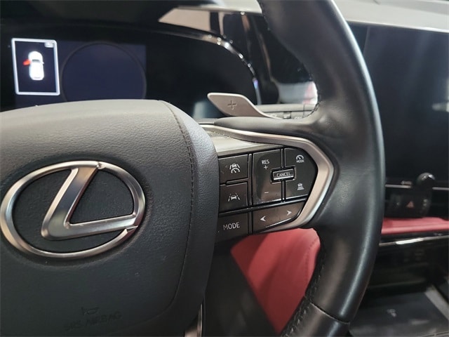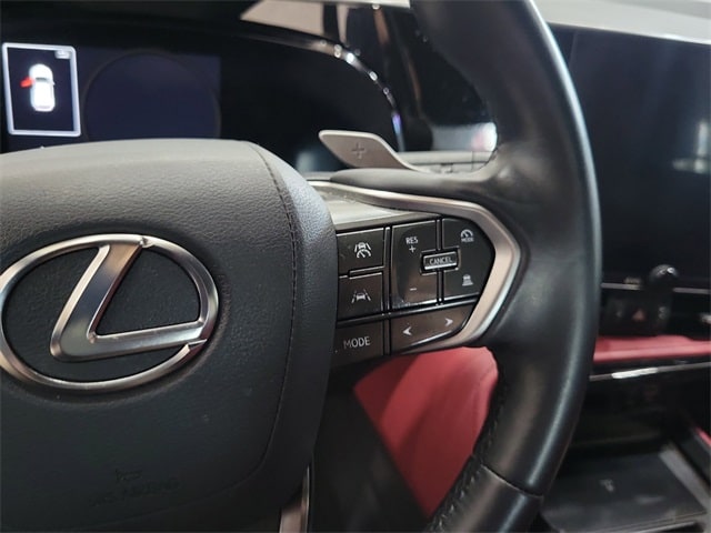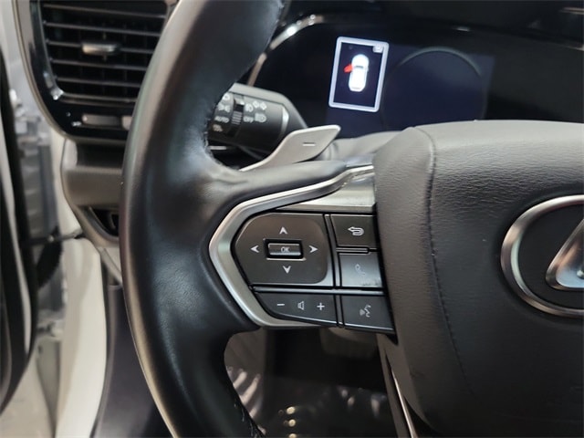 10 Speakers, 4-Wheel Disc Brakes, ABS brakes, Air Conditioning, Alloy wheels, AM/FM radio: SiriusXM, Auto High-beam Headlights, Auto tilt-away steering wheel, Auto-dimming door mirrors, Auto-dimming Rear-View mirror, Automatic temperature control, Brake assist, Bumpers: body-color, Delay-off headlights, Driver door bin, Driver vanity mirror, Dual front impact airbags, Dual front side impact airbags, Electronic Stability Control, Emergency communication system: Safety Connect (up to 10-year trial subscription included), Exterior Parking Camera Rear, Four wheel independent suspension, Front anti-roll bar, Front Bucket Seats, Front Center Armrest, Front dual zone A/C, Front fog lights, Front reading lights, Fully automatic headlights, Garage door transmitter: HomeLink, Heated & Ventilated Front Bucket Seats, Heated door mirrors, Heated front seats, Illuminated entry, Knee airbag, Leather Shift Knob, Leather steering wheel, Low tire pressure warning, Memory seat, Navigation system: Drive Connect Cloud Navigation (subscription required), NuLuxe Seat Trim, Occupant sensing airbag, Outside temperature display, Overhead airbag, Overhead console, Panic alarm, Passenger door bin, Passenger vanity mirror, Power door mirrors, Power driver seat, Power Liftgate, Power moonroof, Power passenger seat, Power steering, Power windows, Radio data system, Radio: 10-Speaker Lexus Premium Sound, Rain sensing wipers, Rear anti-roll bar, Rear reading lights, Rear seat center armrest, Rear window defroster, Rear window wiper, Remote keyless entry, Security system, Speed control, Speed-sensing steering, Speed-Sensitive Wipers, Split folding rear seat, Spoiler, Steering wheel memory, Steering wheel mounted audio controls, Tachometer, Telescoping steering wheel, Tilt steering wheel, Traction control, Trip computer, Turn signal indicator mirrors, Variably intermittent wipers, Ventilated front seats, Wheels: 18" Alloy w/Dark Gray Met & Machined Finish, and Wireless Apple CarPlay/Wireless Android Auto.