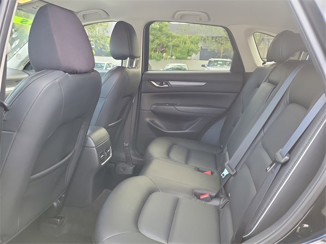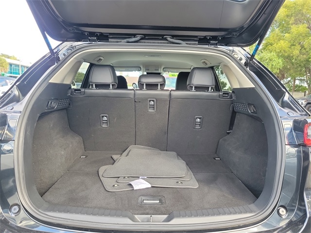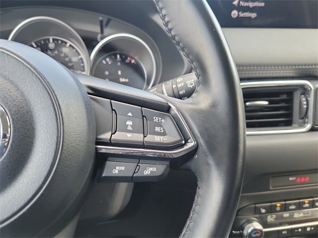Roof Rails & Cross Bars Package, 4-Wheel Disc Brakes, 4.624 Axle Ratio, 6 Speakers, ABS brakes, Air Conditioning, Alloy wheels, AM/FM radio, AppLink/Apple CarPlay and Android Auto, Auto High-beam Headlights, Automatic temperature control, Brake assist, Bumpers: body-color, Delay-off headlights, Driver door bin, Driver vanity mirror, Dual front impact airbags, Dual front side impact airbags, E911 Automatic Emergency Notification, Electronic Stability Control, Emergency communication system: MAZDA CONNECT, Exterior Parking Camera Rear, Four wheel independent suspension, Front anti-roll bar, Front Bucket Seats, Front Center Armrest w/Storage, Front dual zone A/C, Front reading lights, Fully automatic headlights, Heated Front Bucket Seats, Heated front seats, Illuminated entry, Infotainment System Voice Command, Leather Shift Knob, Leather steering wheel, Leatherette Seat Trim, Low tire pressure warning, Multifunction Commander Control, Occupant sensing airbag, Outside temperature display, Overhead airbag, Overhead console, Pandora, Panic alarm, Passenger door bin, Passenger vanity mirror, Power door mirrors, Power driver seat, Power steering, Power windows, Radio Broadcast Data System Program Information, Radio data system, Radio: AM/FM/HD Audio System, Rain sensing wipers, Rear anti-roll bar, Rear reading lights, Rear seat center armrest, Rear window defroster, Rear window wiper, Remote keyless entry, SMS Text Msg Audio Delivery & Reply, Speed control, Speed-sensing steering, Split folding rear seat, Spoiler, Steering wheel mounted audio controls, Tachometer, Telescoping steering wheel, Tilt steering wheel, Traction control, Trip computer, Turn signal indicator mirrors, Variably intermittent wipers, and Wheels: 17" x 7J Aluminum Alloy.