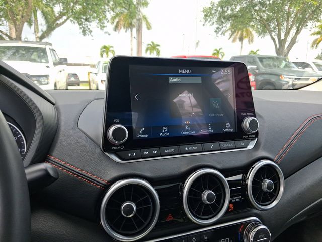 SR Premium Package (6-Way Power Driver's Seat, Bose Premium Audio System with 8 Speakers, Intelligent Around View Monitor (I-AVM), Leather Heated Steering Wheel, Leatherette Seat Trim, NissanConnect Services, Power Sliding Glass Moonroof with Tilt Feature, Sunvisors with Illuminated Vanity Mirrors, and Wi-Fi Hotspot), CVT with Xtronic, Sport Cloth, 18" Alloy Wheels, 2-Tone Premium Paint, 4-Wheel Disc Brakes, 8 Speakers, ABS brakes, Air Conditioning, Alloy wheels, AM/FM radio: SiriusXM, Auto High-beam Headlights, Automatic temperature control, Blind Spot Warning, Brake assist, Bumpers: body-color, Carpeted Floor Mats with Trunk Mat, Delay-off headlights, Driver door bin, Driver vanity mirror, Dual front impact airbags, Dual front side impact airbags, Electronic Stability Control, Four wheel independent suspension, Front anti-roll bar, Front Bucket Seats, Front Center Armrest, Front dual zone A/C, Front reading lights, Fully automatic headlights, Heated door mirrors, Heated Front Bucket Seats, Heated front seats, Illuminated entry, Knee airbag, Leather Shift Knob, Low tire pressure warning, NissanConnect featuring Apple CarPlay and Android Auto, Occupant sensing airbag, Outside temperature display, Overhead airbag, Overhead console, Panic alarm, Passenger door bin, Passenger vanity mirror, Power door mirrors, Power steering, Power windows, Radio data system, Radio: AM/FM with RDS/MP3/Aux-in, Rear anti-roll bar, Rear Parking Sensors, Rear seat center armrest, Rear side impact airbag, Rear window defroster, Remote keyless entry, Security system, Speed control, Speed-sensing steering, Split folding rear seat, Spoiler, Sport Cloth Seat Trim, Steering wheel mounted audio controls, Tachometer, Telescoping steering wheel, Tilt steering wheel, Traction control, Trip computer, Turn signal indicator mirrors, and Variably intermittent wipers.