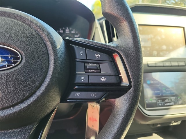 Standard Model, 4 Speakers, 4-Wheel Disc Brakes, ABS brakes, Air Conditioning, Alloy wheels, AM/FM radio: SiriusXM, Anti-whiplash front head restraints, Auto High-beam Headlights, Auto-Dimming Mirror w/Compass & HomeLink, Automatic temperature control, Brake assist, Bumpers: body-color, Cargo Cover, Cargo Net, Cloth Upholstery, Driver door bin, Driver vanity mirror, Dual front impact airbags, Dual front side impact airbags, Electronic Stability Control, Exterior Parking Camera Rear, Four wheel independent suspension, Front anti-roll bar, Front Bucket Seats, Front Center Armrest, Front dual zone A/C, Front reading lights, Fully automatic headlights, Illuminated entry, Knee airbag, Low tire pressure warning, Occupant sensing airbag, Outside temperature display, Overhead airbag, Overhead console, Panic alarm, Passenger door bin, Passenger vanity mirror, Power door mirrors, Power steering, Power windows, Radio data system, Radio: Subaru Dual 7.0" Multimedia System, Rear anti-roll bar, Rear Gate Assist Handle, Rear window defroster, Rear window wiper, Remote keyless entry, Security system, Speed control, Speed-sensing steering, Split folding rear seat, Spoiler, Steering wheel mounted audio controls, Tachometer, Telescoping steering wheel, Tilt steering wheel, Traction control, Trip computer, Variably intermittent wipers, and Wheels: 17" x 7.0" J Dark Gray Aluminum-Alloy.