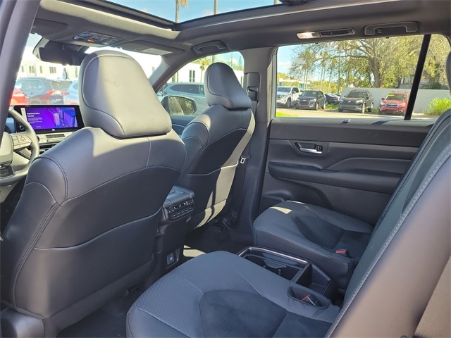 2.4L 4-Cylinder 16V, ABS brakes, Active Cruise Control, Alloy wheels, Electronic Stability Control, Front dual zone A/C, Heated door mirrors, Heated front seats, Heated rear seats, Illuminated entry, Low tire pressure warning, Navigation System, Power Liftgate, Power moonroof, Remote keyless entry, Traction control, 11 Speakers, 3rd row seats: split-bench, 4-Wheel Disc Brakes, Air Conditioning, AM/FM radio: SiriusXM, Apple CarPlay/Android Auto, Auto High-beam Headlights, Auto-dimming Rear-View mirror, Automatic temperature control, Brake assist, Bumpers: body-color, Delay-off headlights, Driver door bin, Driver vanity mirror, Dual front impact airbags, Dual front side impact airbags, Emergency communication system: Safety Connect (up to 10-year trial subscription), Exterior Parking Camera Rear, Four wheel independent suspension, Front anti-roll bar, Front Bucket Seats, Front Center Armrest, Front fog lights, Front reading lights, Fully automatic headlights, Garage door transmitter: HomeLink, Heads-Up Display, Heated and Ventilated Front Seats, Heated steering wheel, Knee airbag, Leather Shift Knob, Leather steering wheel, Memory seat, Navigation system: Drive Connect Cloud Navigation (1-year trial subscription), Occupant sensing airbag, Outside temperature display, Overhead airbag, Overhead console, Panic alarm, Passenger door bin, Passenger vanity mirror, Power door mirrors, Power driver seat, Power passenger seat, Power steering, Power windows, Radio: 12.3" Toyota Audio Multimedia with JBL Premium Audio, Rain sensing wipers, Rear air conditioning, Rear anti-roll bar, Rear reading lights, Rear window defroster, Rear window wiper, Reclining 3rd row seat, Security system, Speed control, Speed-sensing steering, Split folding rear seat, Spoiler, Steering wheel mounted audio controls, Telescoping steering wheel, Tilt steering wheel, Trip computer, Turn signal indicator mirrors, Ultrasuede/Leather Seat Trim, Variably intermittent wipers, Ventilated front seats, Ventilated rear seats, and Wheels: 20" 2-Tone Multi-Spoke Alloy.